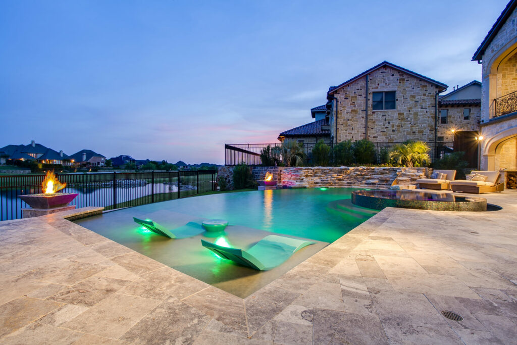 Travertine pavers provide a classic, elegant look for patios, pool decks, and walkways. They are a low-maintenance material that stays 20 – 30% cooler than other surfaces, making them popular for pool decks.