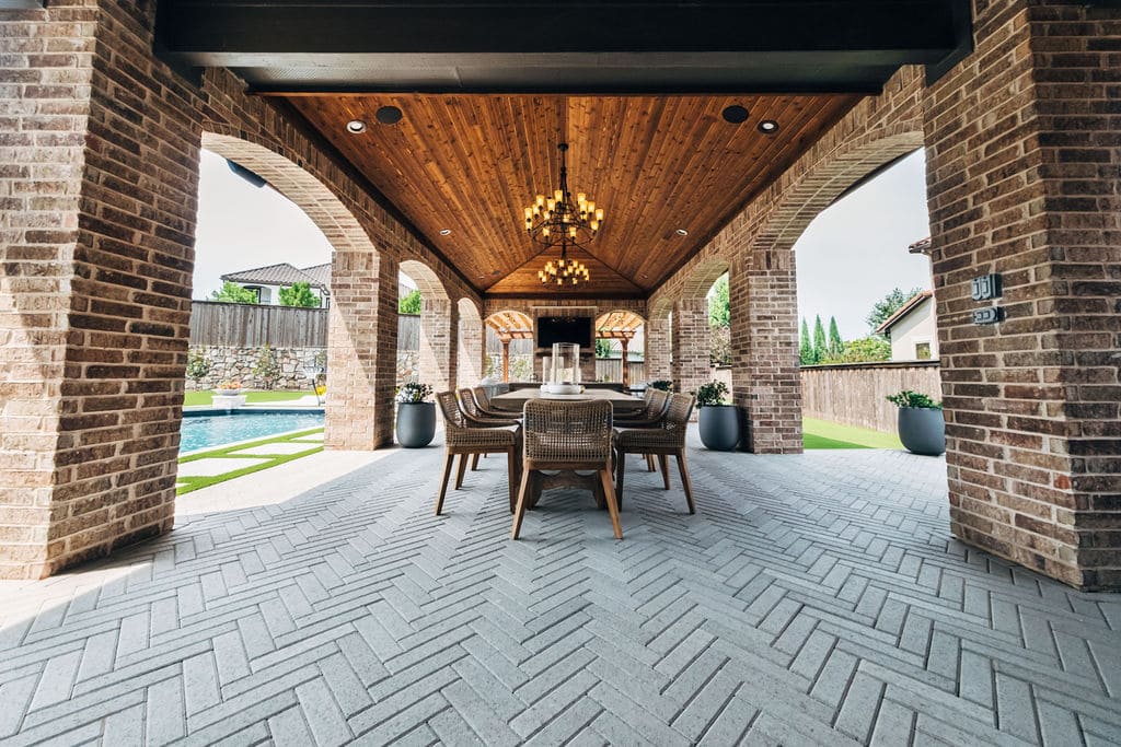 Brick pavers are a classic look that has been around for over a century. There are many different color and size options. They are highly recyclable, durable in the Texas weather, and great for keeping their color and appearance.